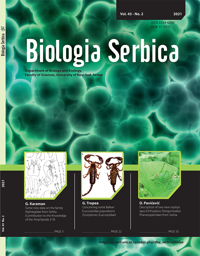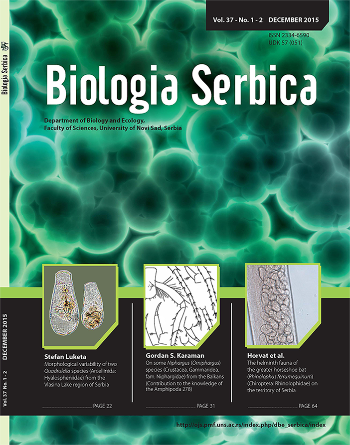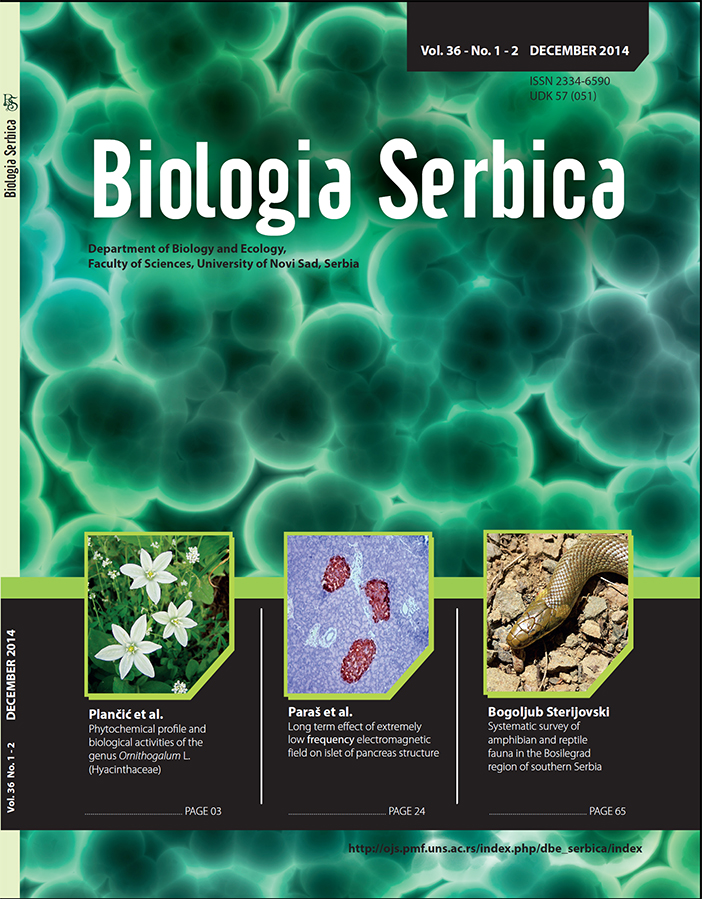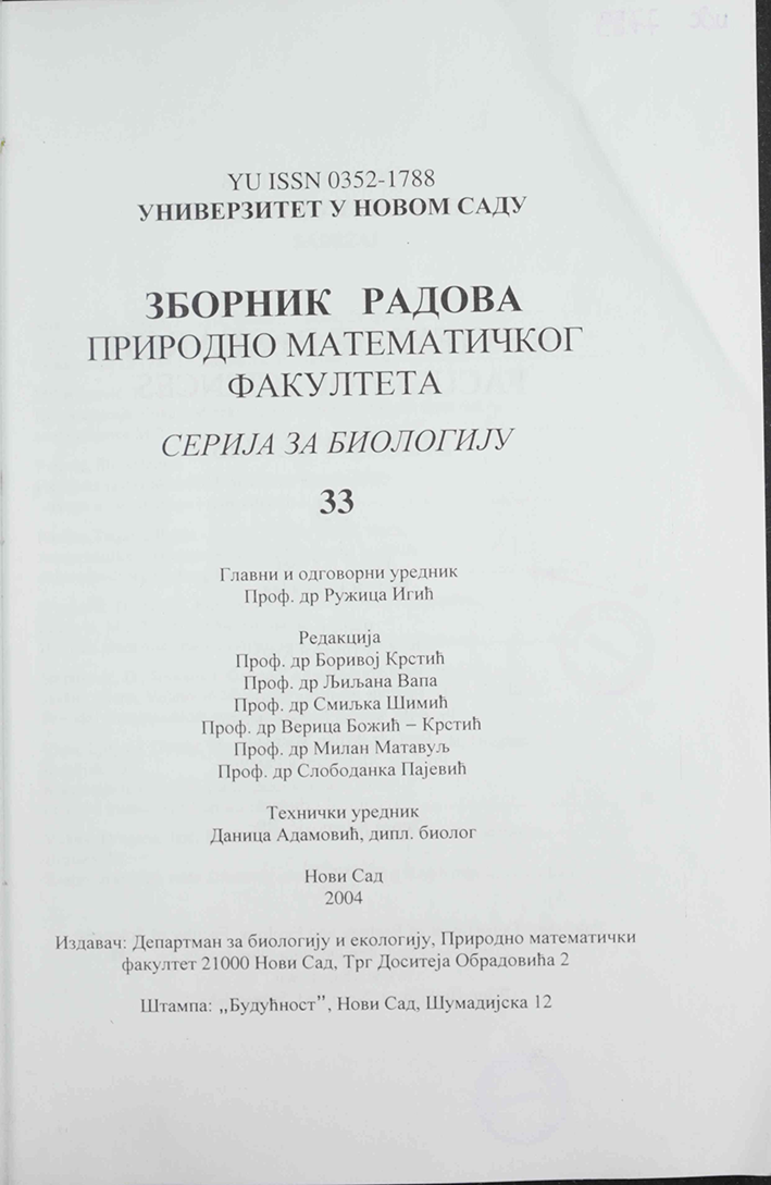 FORMER JOURNAL (PUBLISHED IN SERBIAN) Vol. 33 (2004): ZBORNIK RADOVA PRIRODNO MATEMATIČKOG FAKULTETA – SERIJA ZA BIOLOGIJU